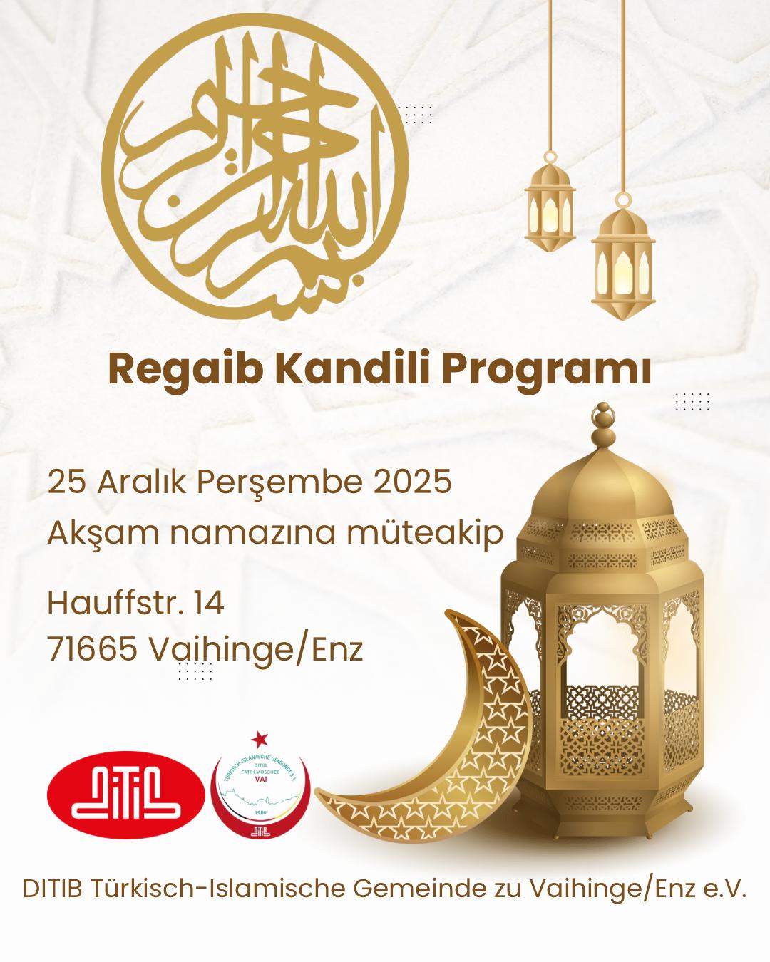 Wir laden alle Gemeindemitglieder und Interessierte herzlich zu unserem Regaib Kandili Programm ein. Lassen Sie uns diese gesegnete Nacht gemeinsam in Gebet und Andacht verbringen.